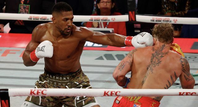In the fifth round, Joshua landed an uppercut that saw Paul holding onto his legs before dropping to the canvas.