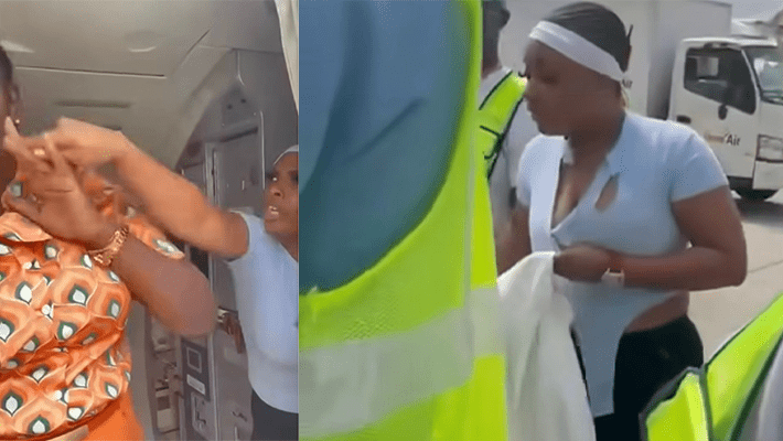 A video circulating on social media showed an enraged Ms Emmanson attacking flight attendants on an Ibom Airplane and confronting airport security officials.