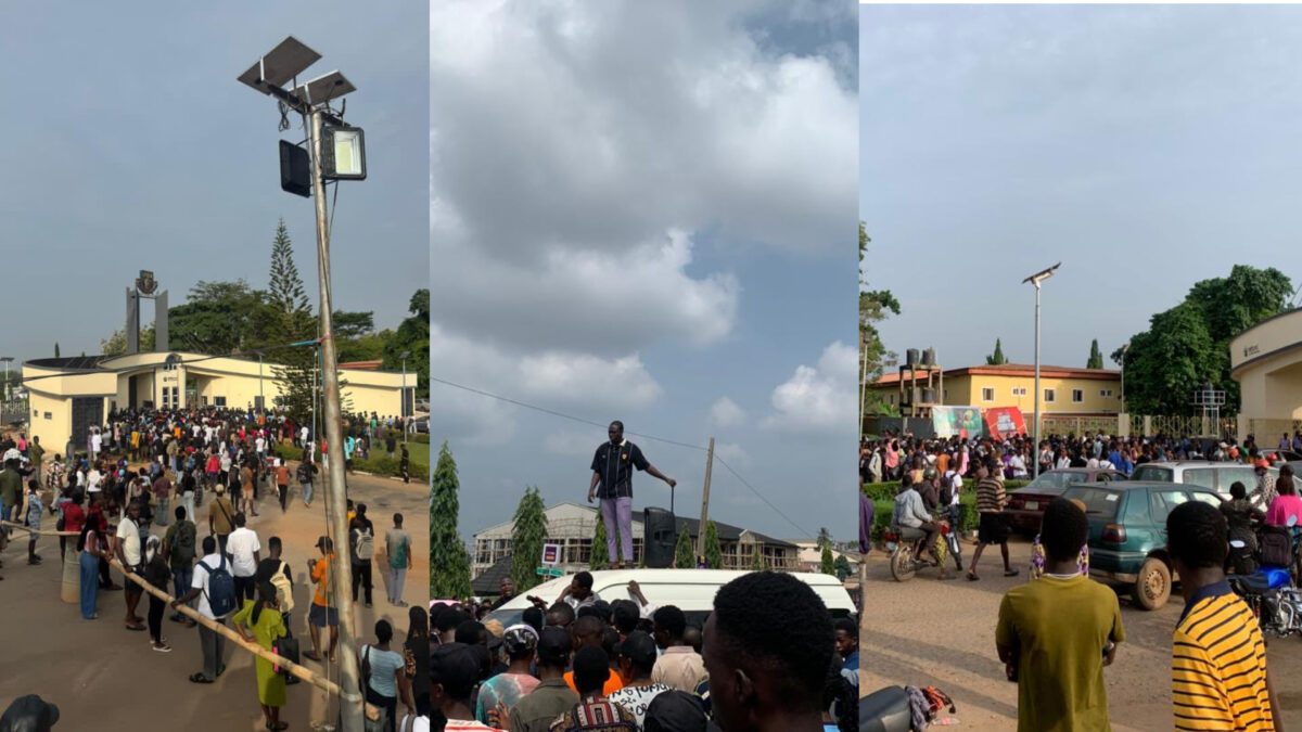 The Peoples Gazette gathered that the protest began with students mobilising across the university’s halls of residence before converging on the university’s main entrance at about 7 am.