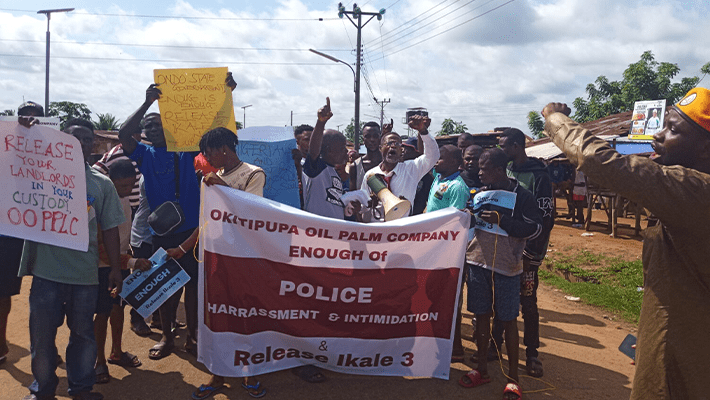 The protesters carried placards with inscriptions such as: “OOPPlc, Obey Supreme Court Judgment and Quit Our Land,’ “Enough of Police Harassment and Intimidation,” “Free Three Ikales and Release Your Landlord Unconditionally,” among others.